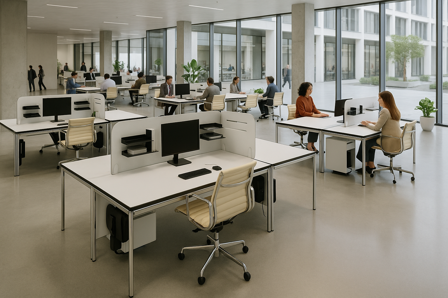 Effizienz und Übersichtlichkeit stehen in öffentlichen Einrichtungen im Vordergrund. Tidy-Wall unterstützt strukturierte Abläufe mit klarer Arbeitsplatztrennung und durchdachtem Kabel- und Dokumentenmanagement. Modularität macht es möglich, große Arbeitsflächen zu gliedern und dennoch ein einheitliches, repräsentatives Erscheinungsbild zu schaffen. Ein Gewinn für konzentriertes Arbeiten und professionelles Auftreten.