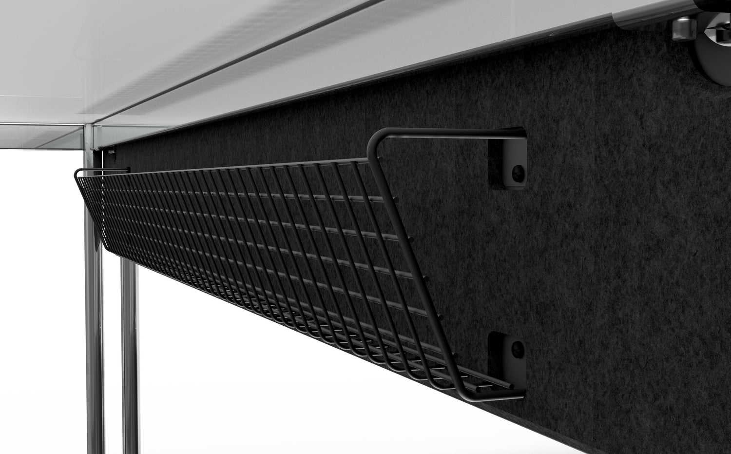 Tidy-Wall bringt Ordnung ins Büro. Alles hat seinen Platz – nur nicht auf der Tischfläche und Boden. Modular, erweiterbar und passend für USM Haller und alle gängigen Tische.