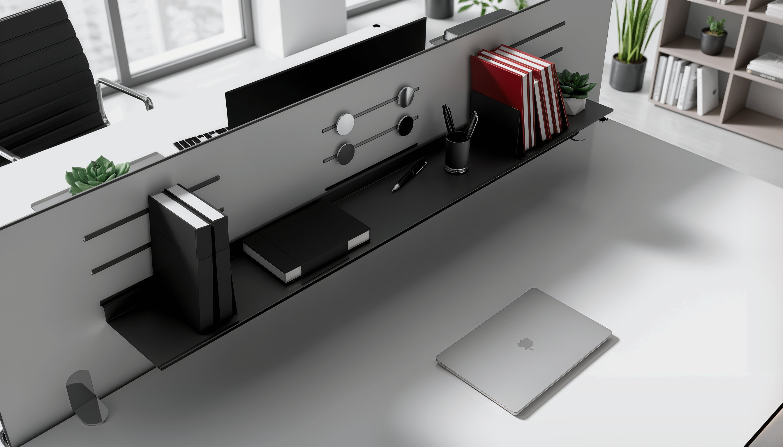 Im Home-Office oder klassischen Büroalltag zählt vor allem Fokus. Tidy-Wall bietet Privatsphäre, klare Strukturen und cleveres Kabelmanagement, damit der Arbeitsplatz ruhig und aufgeräumt wirkt. Ablagen und Halterungen sorgen dafür, dass alles seinen Platz hat – von Arbeitsunterlagen bis hin zu technischen Geräten. Das Ergebnis: weniger Ablenkung, mehr Produktivität, ein Arbeitsplatz mit Stil.